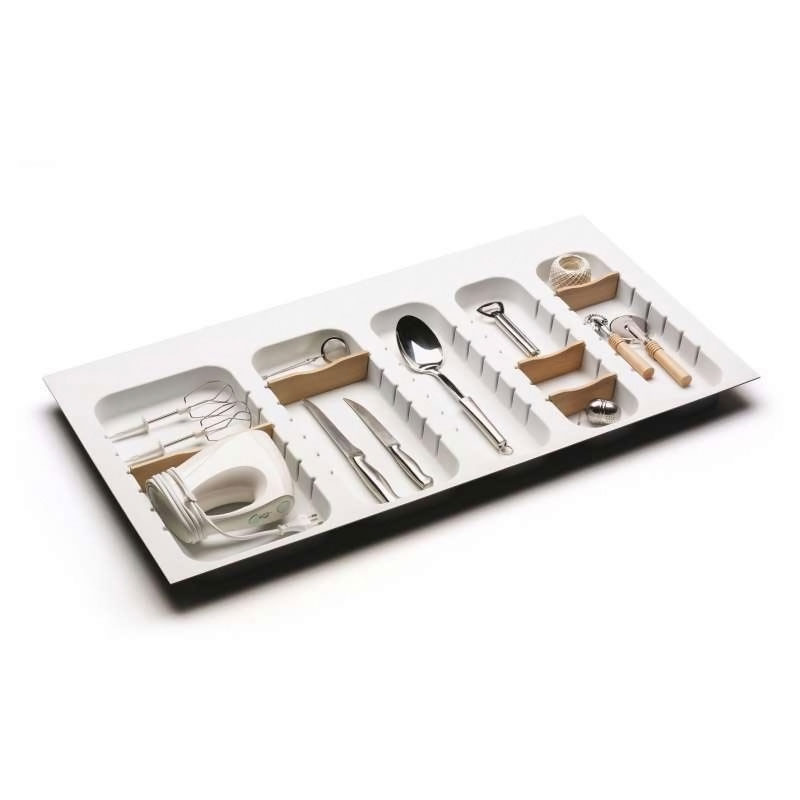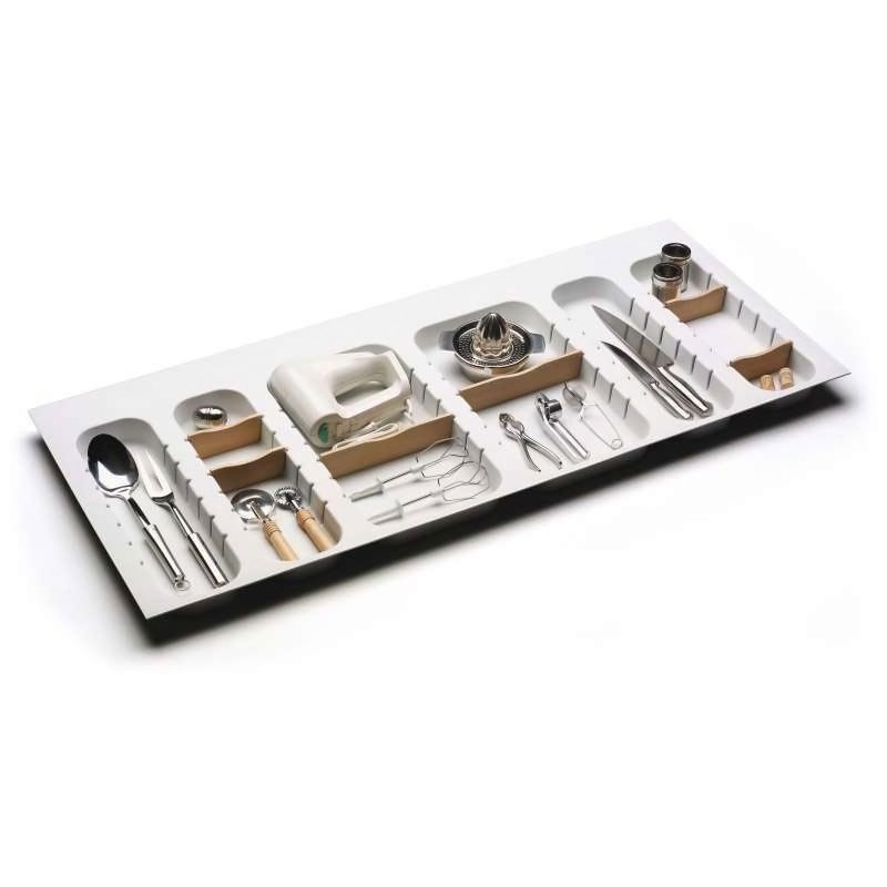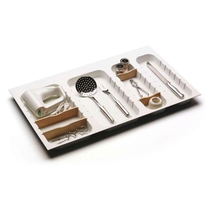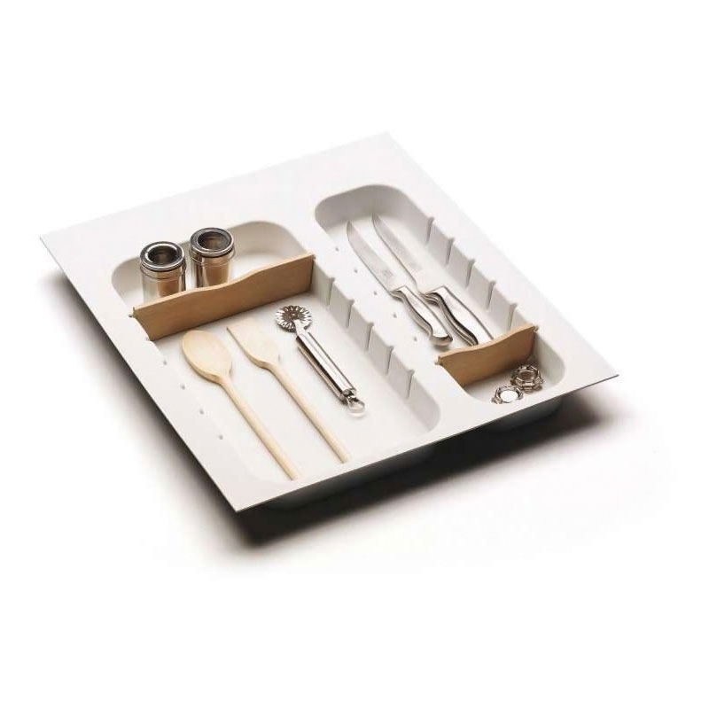 Rangements PVC avec compartiments aménageables et de grande taille pour un rangement fonctionnel des ustensiles de cuisine.