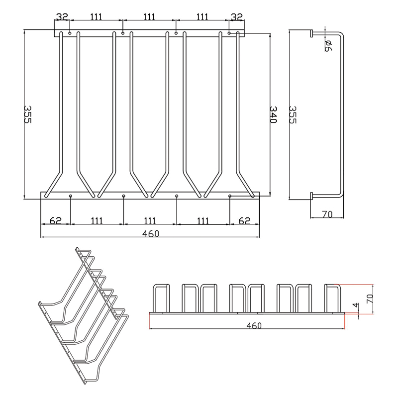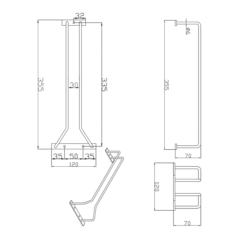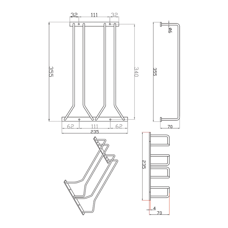 Fixation à visser, sous tablette.
