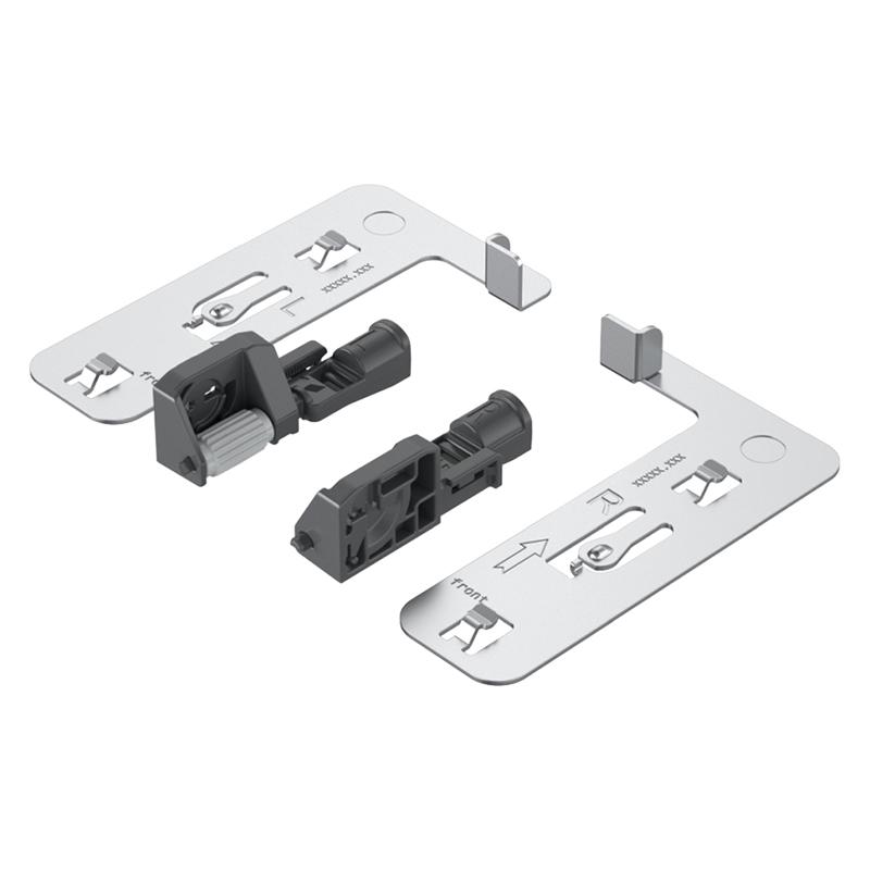 S'adapte sur les coulisses Actro 5D avec Silent System et Actro YOU pour tiroir bois ou tiroir AvanTech YOU.Montage sans outil et réglage de la profondeur jusqu'à +4mm.N'est pas nécessaire si utilisation du boitier Push To Open Silent qui possède ce réglage.