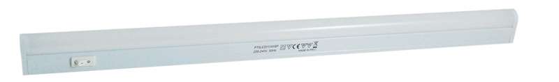 Réglette thermoplastique. Pose en applique. Décor blanc. Avec interrupteur.Livrée avec un câble prise secteur longueur 1800mm, 1 rallonge de 150mm et fixations.