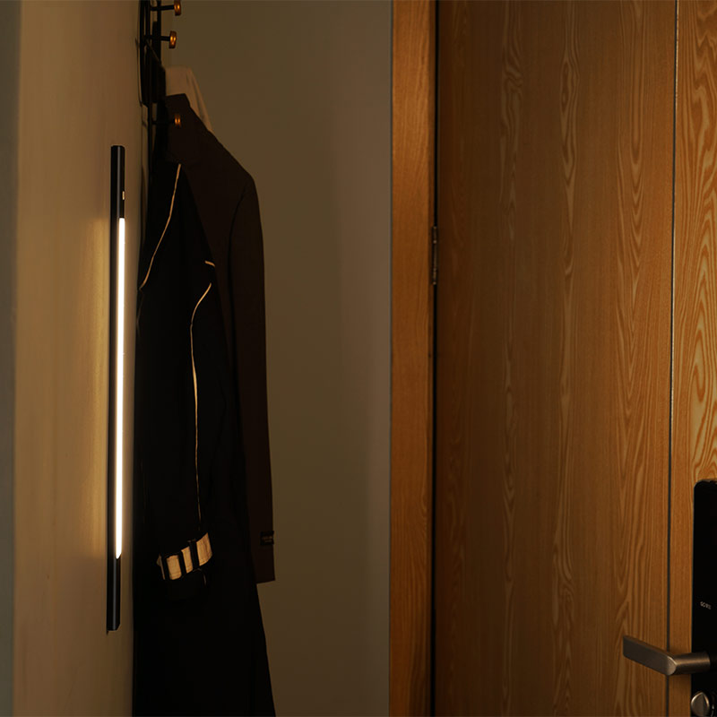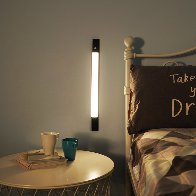 Réglette avec batterie LithiumMontage simple par clipsage aimanté ou double face fourniBatterie détachable, rechargeable sur chargeur de téléphone portableAllumage automatique détecteur de mouvement + fonction bouton sensitif on offDimmer intégré pour réglage liseuse par exemple.