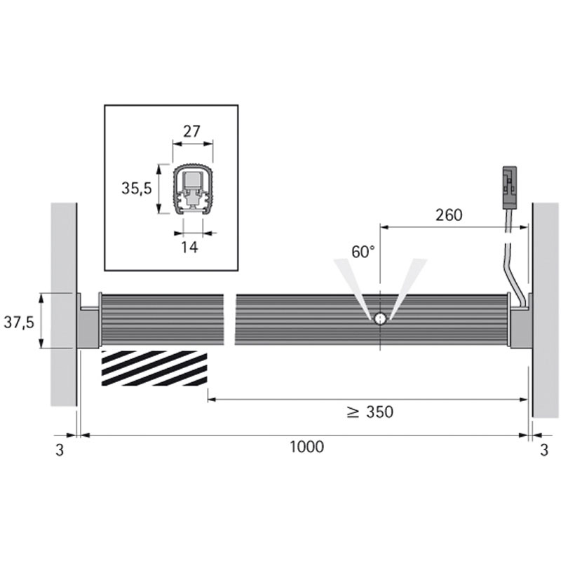 Barre de penderie avec éclairage automatique à l’ouverture de la porte. Détecteur de mouvement intégré. Profil aluminium, décor argent anodisé. Fixation latérale. Pour caisson épaisseur 16 à 19 mm. Charge maxi 40 kg. Recoupable, pose en applique. Câble de liaison longueur 2000 mm équipé d’une mini-prise LED M1. Livrée sans alimentation.