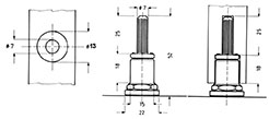 Régulateur encastrable avec douille.Réglage par clé octogonale de 16 mm.Douille Ø 7mm, hauteur 24 mm. Patin plastique noir.