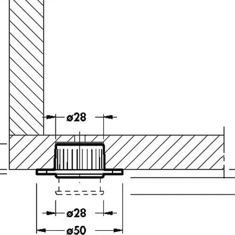 Régulateur zamac et ABS.Réglage vertical de 10mm avec clé 6 pans de 6mm.Perçage Ø 28mm hauteur 15mm.Hauteur sous plancher mini 4,5mm.Charge 400 kg.Fixation dans le plancher du meuble épaisseur 19mm.
