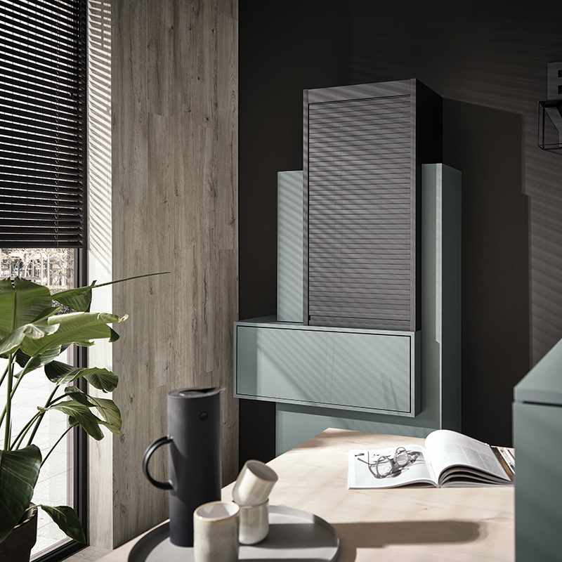 Rauvolet Edelmat rend le design de luxe plus adapté que jamais à un usage quotidien. Il garantit une utilisation maximale de l'espace de rangement disponible, mais lorsqu'il est fermé, il se fond parfaitement dans l'environnement, sans aucune rupture de matériau ou de couleur.