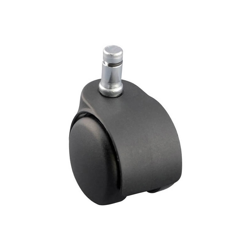 Roulette double en nylon.Avec tige clipsable Ø 11 x 22 mm.Fixation couramment utilisée pour siège de bureau.Conforme à la norme EN 12529.
