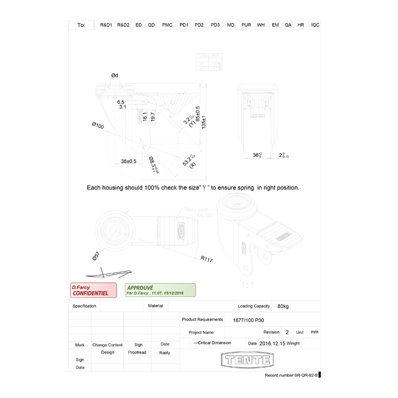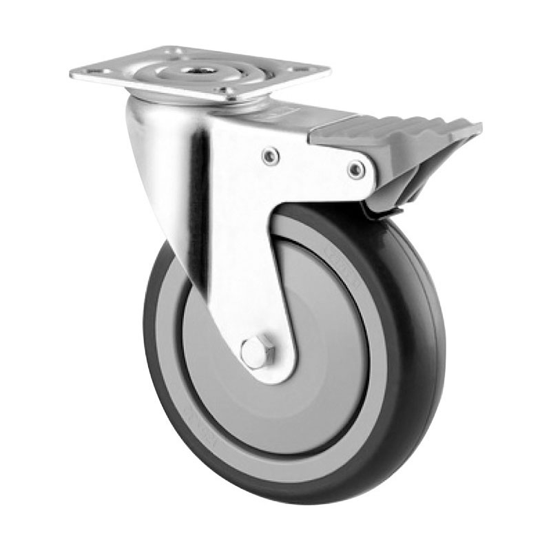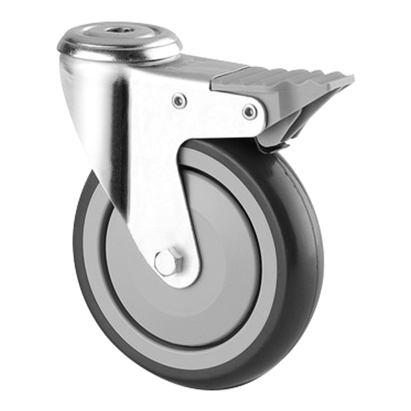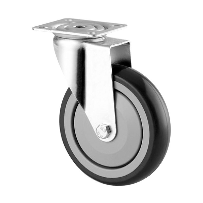Roulette polypropylène bandage caoutchouc thermoplastique non tachant.Monture acier zingué.Pivot sur double roulement à billes.Moyeu sur roulement à billes avec pare fil.Axe boulonné.