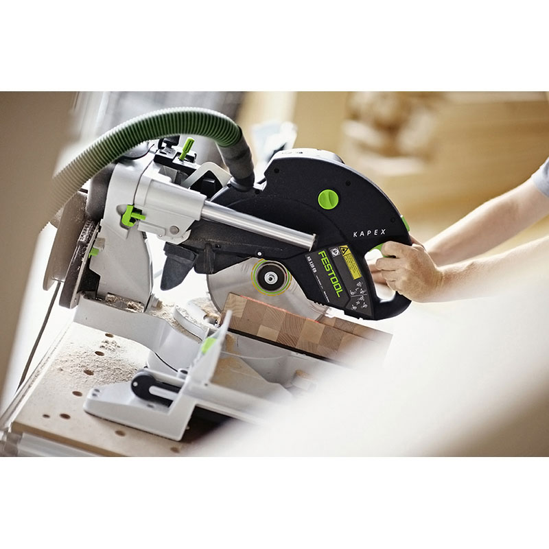 Vers la gauche ou la droite, avec son guidage à double colonne de grandes dimensions, monté sur roulement à billes, la précision des coupes est parfaite. Double protection pour une très longue durée de vie, toujours précis et sans jeu.