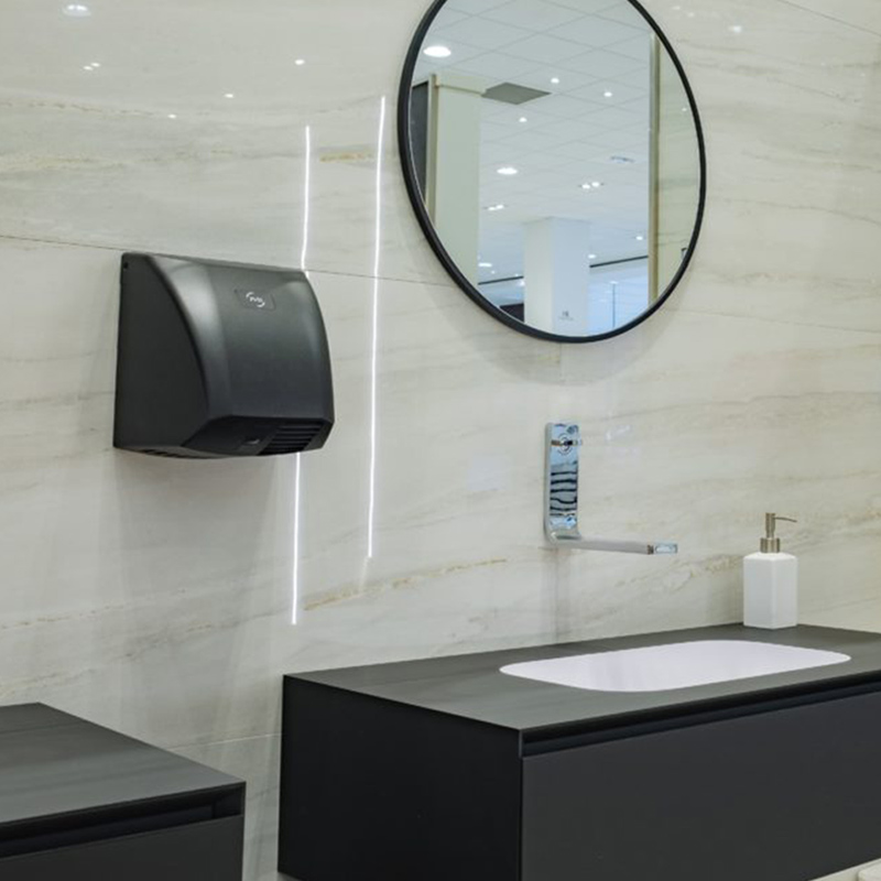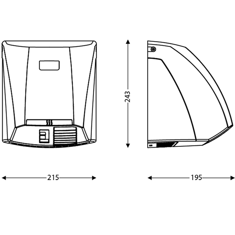 Sèche main antivandalisme.Alimentation : 220/240 V.Puissance nominale en fonctionnement : 2100 W.Temps de séchage: 20 à 30 secondes.Température de sortie d'air: 60°CNiveau sonore: 69 dB.Détection infrarouge.IP23 - Classe II.Fabrication française.
