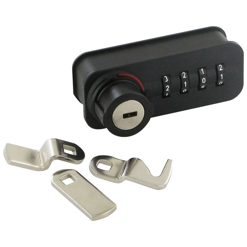 Serrure robuste à code mécanique à quatre chiffres. 10 000 combinaisons possibles.Bouton tournant à cylindre utilisable avec clé de sécurité pour déverrouillage d’urgence.Brouillage du code sélectionné à l’ouverture et à la fermeture de la serrure.Montage horizontal. Non réversible. Pour panneau bois épaisseur 18 à 21.Largeur 82,5, hauteur 33. Encastrement 79,5x 27,5. Décor noir.