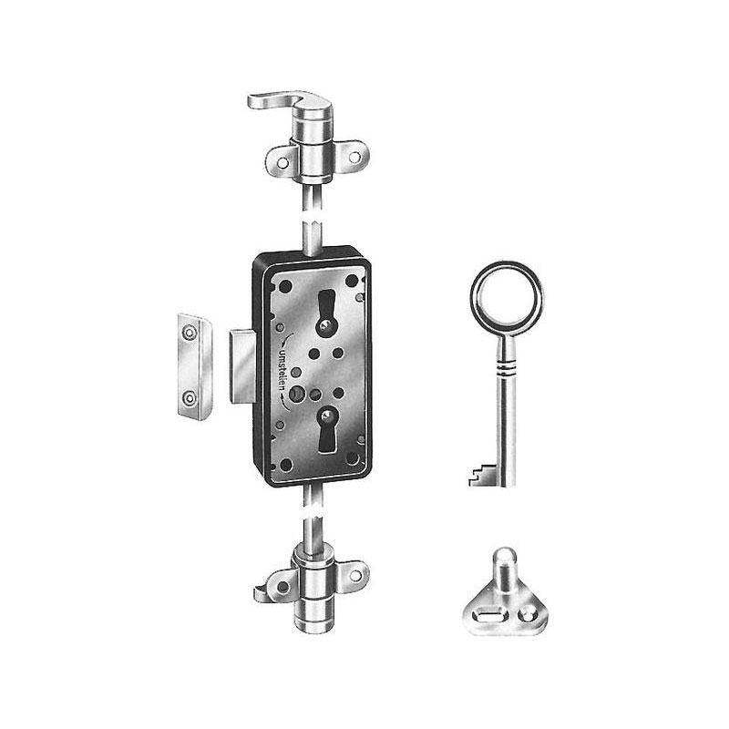 Serrure à espagnolettes 7052 Junie, en applique, à pêne dormantlatéral " 3 gorges ", axe 15 et 20 mm.Coffre en plastique marron, utilisable à droite et à gauche.Livré avec 1 [...]