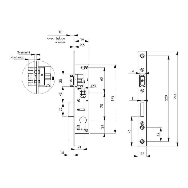 Coffre acier épaisseur 15 mm. Pour cylindre européen.