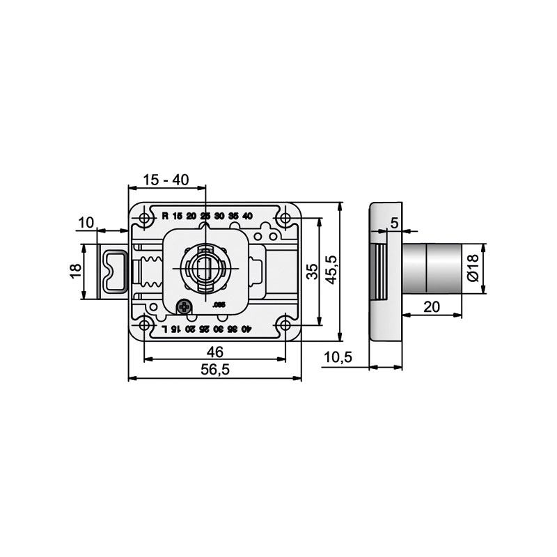 Serrure axe réglable de 15 à 40 mm.
