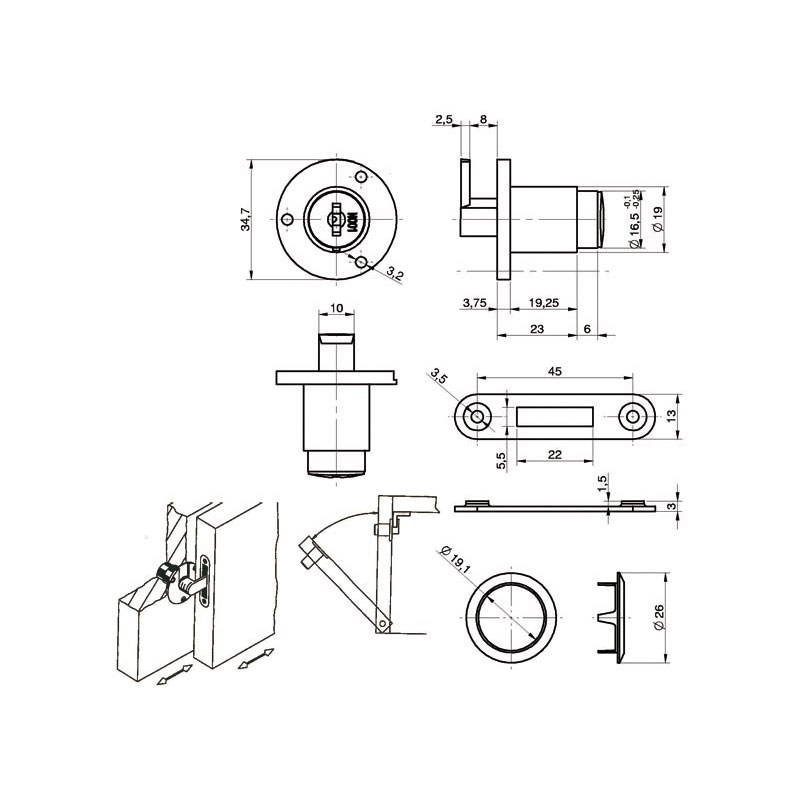 Livré avec 2 clés, 1 rosace Ø26 et 1 gâche plate.