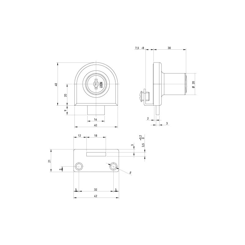 Livré avec 2 clés et 1 gâche plate 42 x 21 mm.