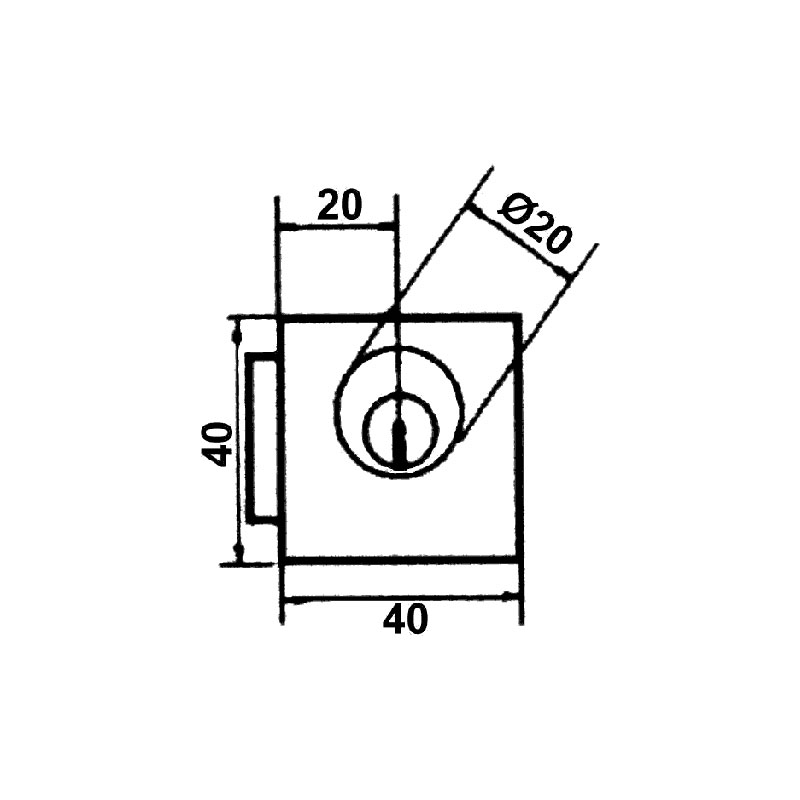 Coffre acier verni. Foncet universel. Cylindre à 4 goupilles en laiton Ø20. Boîtier 40x40. Livré avec 2 clés plates nickelées et bague.