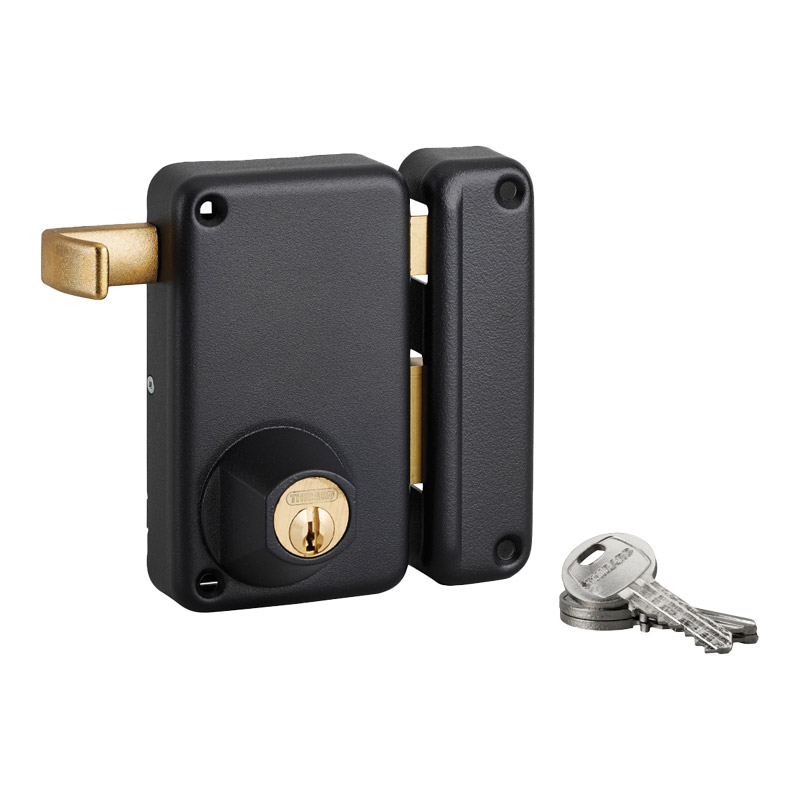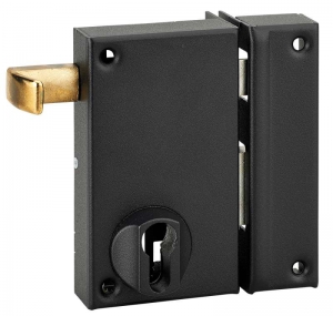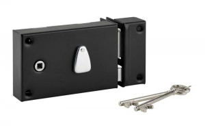 Serrure de sûreté finition époxy à tirage, avec double cylindre laiton 5 goupilles Ø23 mm x longueur 45mm.Pour porte d'entrée.Mécanisme à 2 tours.Rappel du 1/2 tour par la clé.Carré de 7mm.Coffre 130 x 75mm et gâche en acier embouti.Pêne et demi-tour acier zingué.Entrée de cylindre et tirage laiton. 3 clés acier nickelées.Livré avec vis de pose.Garantie 10 ans.