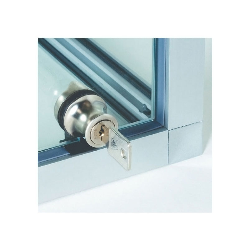 Serrure bouton à cylindre s'entrouvrant.Pour porte battante en verre d'épaisseur 4 à 6mm.Perçage du verre Ø 26mm.Fixation dans la structure aluminium basse de vitrine à l'aide de la gâche réf. 744 38710 00000.
