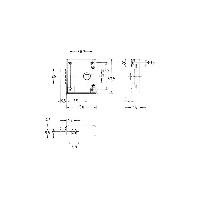Serrure prévue pour tringles gainées Ø8.