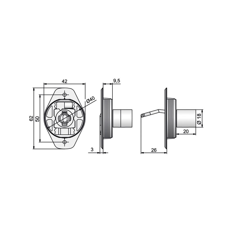 Encastrement diamètre 40 mm, profondeur 9,5 mm.