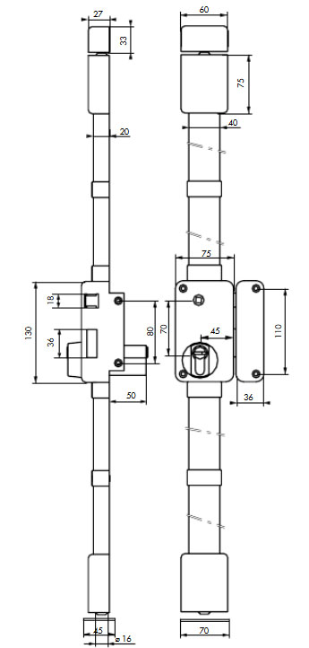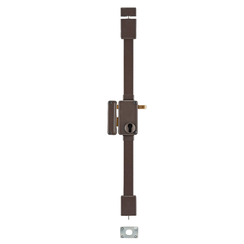 Boitier de serrure coffre 130 x 75mm en acier embouti finition époxy, pour cylindre 30 x 65mm (non fourni).Pour porte d'entrée.Mécanisme intérieur type équerre permettant la manoeuvre du 1/2 tour avec la clé (de l'intérieur comme de l'extérieur).Pêne dormant et 1/2 tour en laiton massif.Pênes haut et bas en acier Ø 16mm, sur tringles plates en acier standard permettant une condamnation de porte 1650 à 2250mm .Pêne et demi-tour acier zingué.Gâche équere de haute résistance.Cache-tringles, guides et gâches de pênes haut et bas en acier ne laissant apparaître aucune vis de fixation.Carré de 7mm.2 versions : à fouillot ou à tirage. Poignée double fournie pour version à fouillot.Garantie 5 ans.