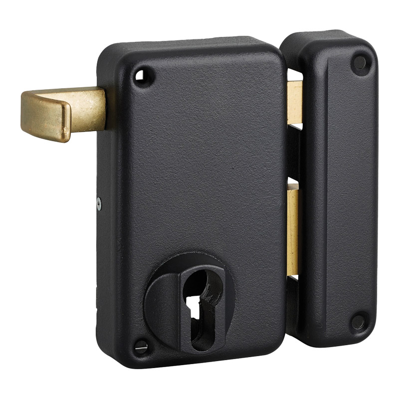 Boîtier de serrure finition époxy à tirage, pour cylindre profilé européen 30x60mm (non fourni).Pour porte d'entrée.Mécanisme à 2 tours. Rappel du 1/2 tour par la clé. Carré de 7mm.Coffre 130 x 75mm et gâche en acier embouti. Pêne et demi-tour acier zingué.Tirage laiton.Livré avec vis de pose.Garantie 10 ans.