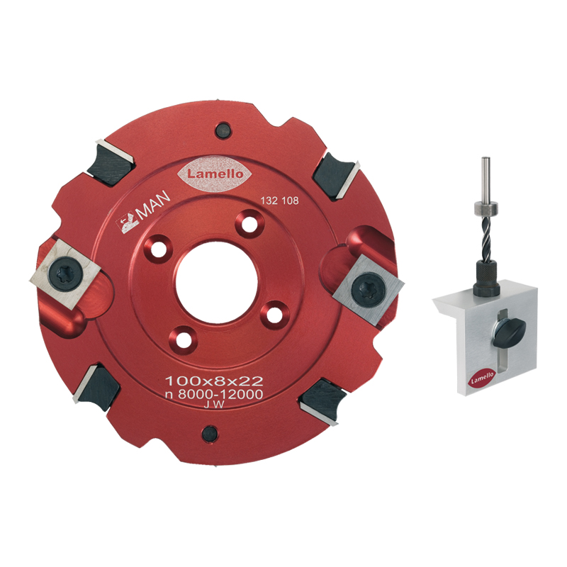 Utilisable sur machine Lamello traditionnelle Top 21, Classic 3 ...Ce set contient : 1 fraise à rainurer Ø100 mm largeur 8 avec plaquettes carbure amovible 1 gabarit de perçage Ø6 mm 1 forêt [...]