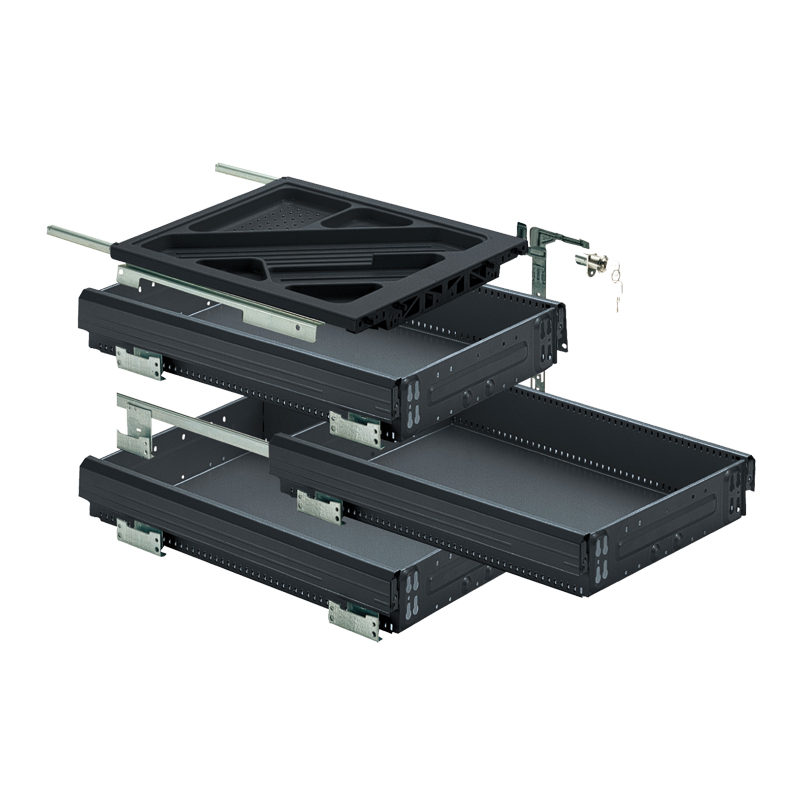 Sets de tiroirs avec accessoires pour la conception de caisson de bureau.