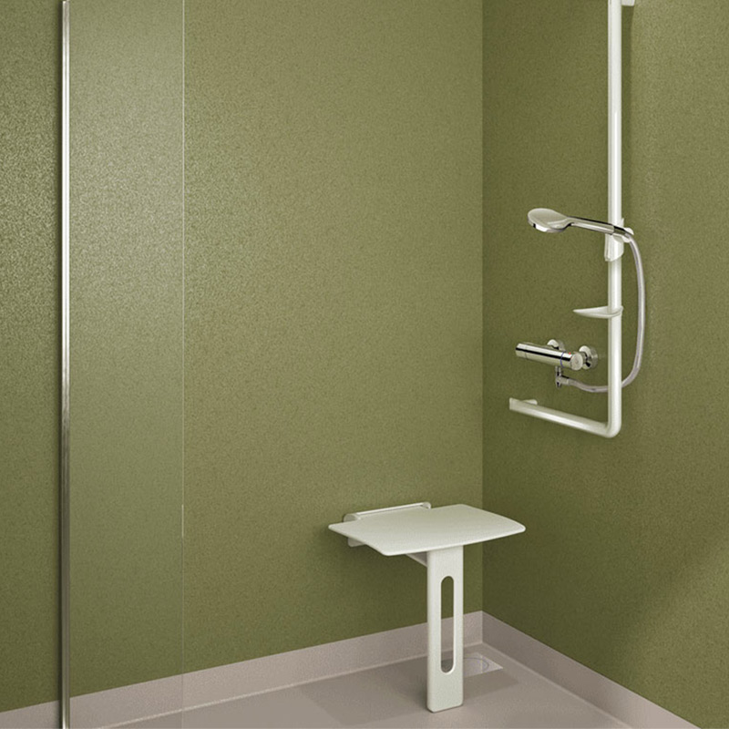 Retenue en position verticale, descente freinée.Amovible : facilement déclipsable avec système de blocage antivol (limite le nombre de sièges dans un établissement)Assise pleine antidérapante.Renfort par pied articulé.5 points de fixations invisibles.Encombrement replié : 86 x 541 mm.Livré avec vis inox ∅8 x 70 mm pour mur béton.Garantie 10 ans. Marquage CE.