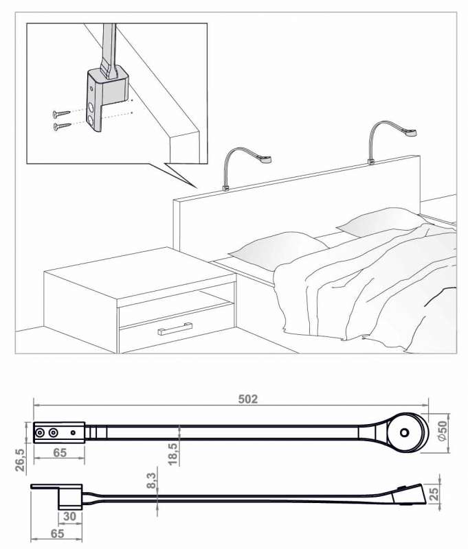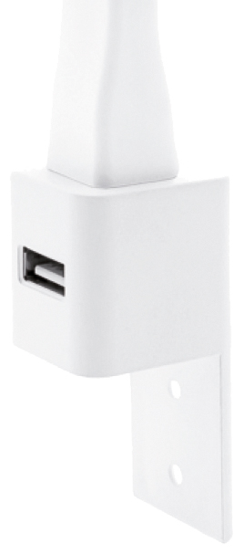 Flexible, pose en applique sur chant. Prise USB alimentation 5VDC/1A. Bras métal flexible avec gainage rectangulaire en silicone aspect velours. Interrupteur sur tête du spot. Bras rectangulaire gainé section 10x18 mm. Câble de liaison 2000 mm équipé d’une mini prise led 12V. Livré sans alimentation