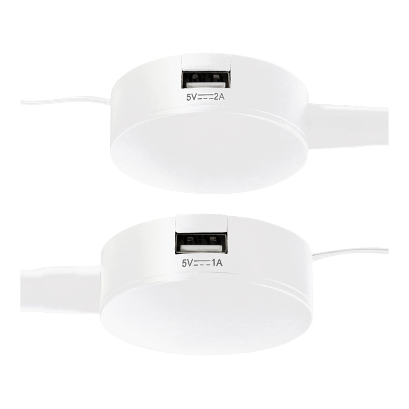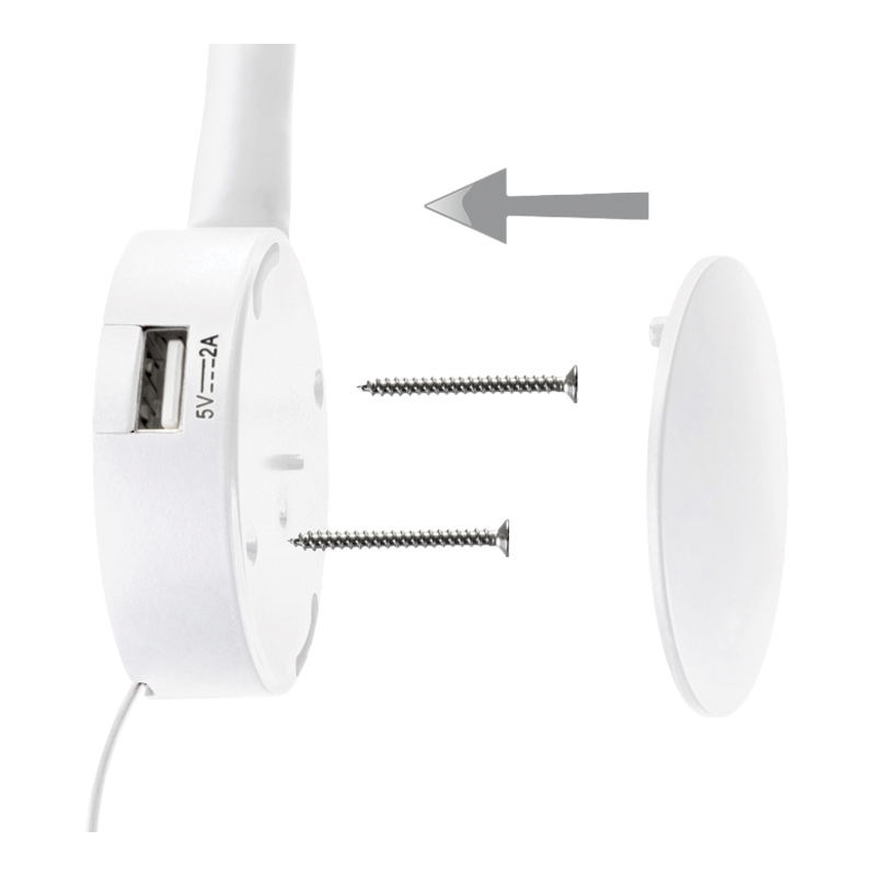 Liseuse équipée de 2 prises USB. Interrupteur variateur sur la tête du spot. Câble de liaison équipé d'une mini prise. Utilisable avec variateur. Livré sans alimentation