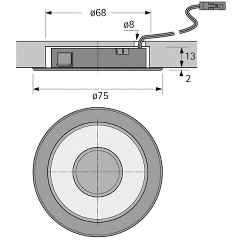 Spots avec diffuseur pour un éclairage doux et homogène.Extérieur Ø75 mm.Spot rond à 30 LED, décor aluminium.Encastrement Ø68 mm, profondeur 13 mmAngle d’éclairage 60°Rendu des couleurs IRC > 90Luminosité 45 lm/WCâble de liaison Longueur 1800 mm équipé d’une mini prise led M1Durée de vie > 30 000 h