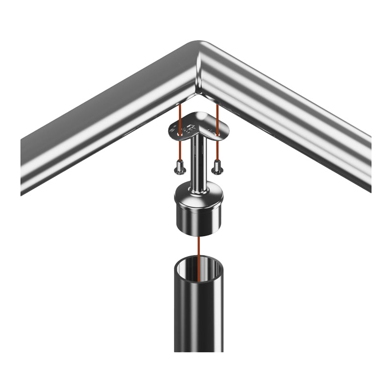 Support d'angle 90° pour main courante.A emboiter sur poteau de réception rond.A coller.Vendu au conditionnement.