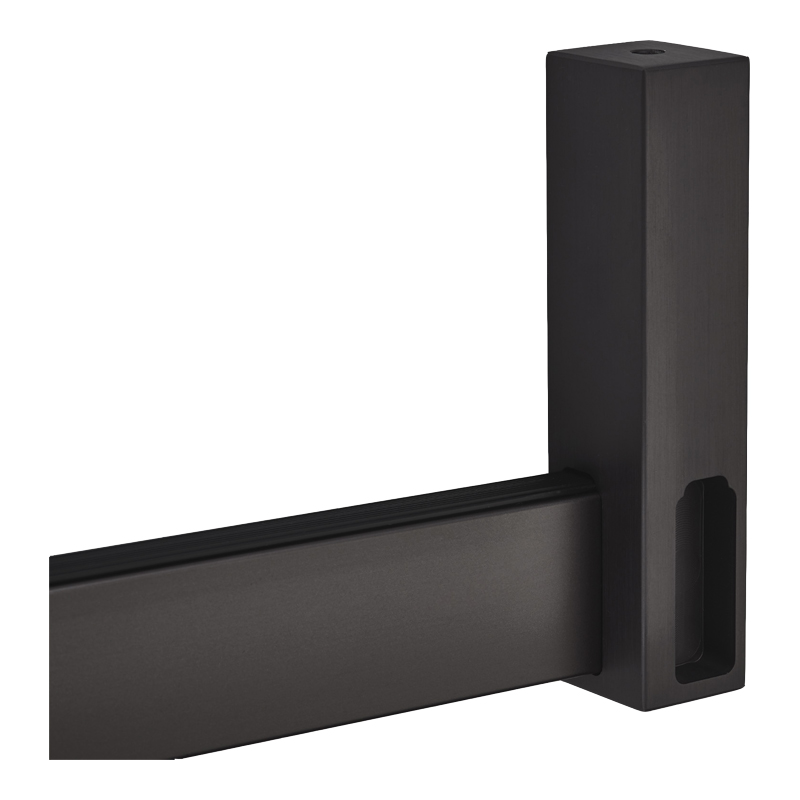 Support d'angle 2 départs 90 degrés pour tube de penderie rectangulaire 32,3 x 11,8 mm.Fixation sous tablette par vis M6x30 mm (incluse).