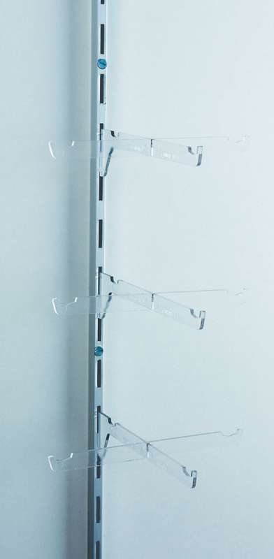 Support pour la présentation d'une paire de lunettes.Pose sur crémaillère Sofadi au pas de 37mm.