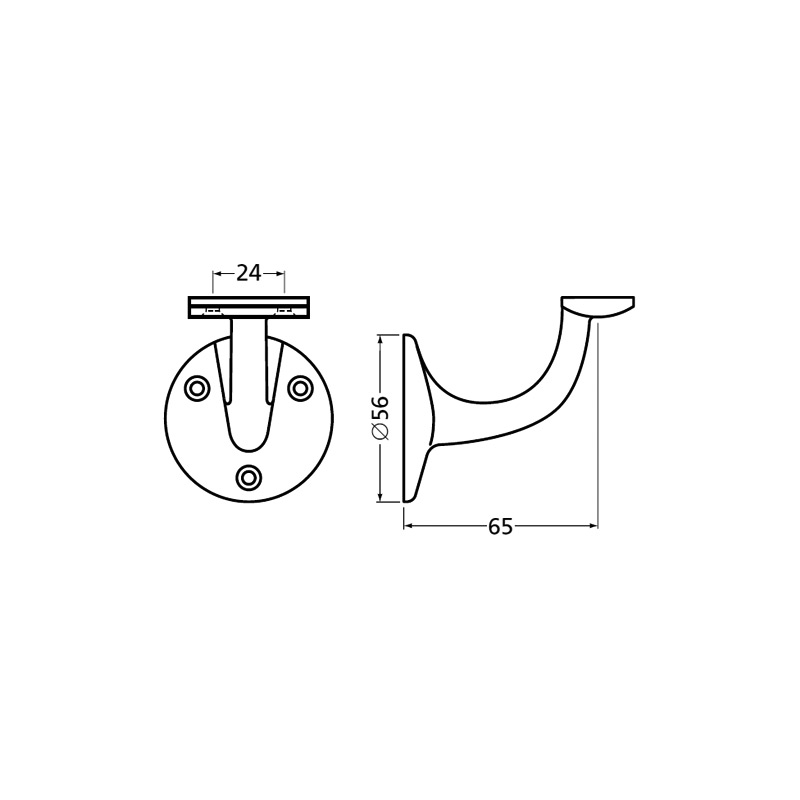 Support pour main courant plate.Fixation en applique par platine ronde à 3 trous.