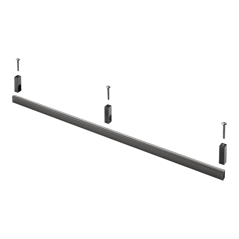 Un support intermédiaire est nécessaire pour les barres de longueur supérieure à 1200 mm ou charges supérieures à 15 kgs.Décor gris brun métallisé.Pour tablette en bois.Fixation sur le panneau haut du meuble. Vis non comprises.Utiliser des vis M6.