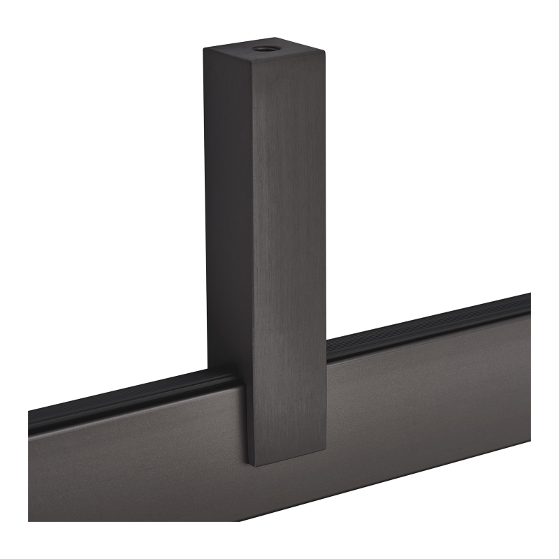 Support intermédiaire pour tube de penderie rectangulaire 32,3 x 11,8 mm.Fixation sous tablette par vis M6x30 mm (incluse). Une vis pointeau est fournie pour serrage sur le tube une fois en place.