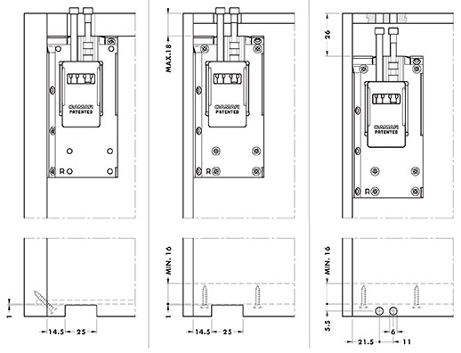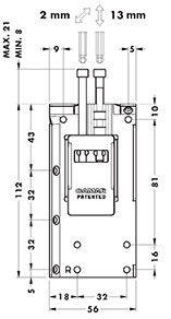 Support acier et zamac. Réglage vertical : 13mmRéglage horizontal : 2mmCharge maximale admissible par pièce : 23Kg