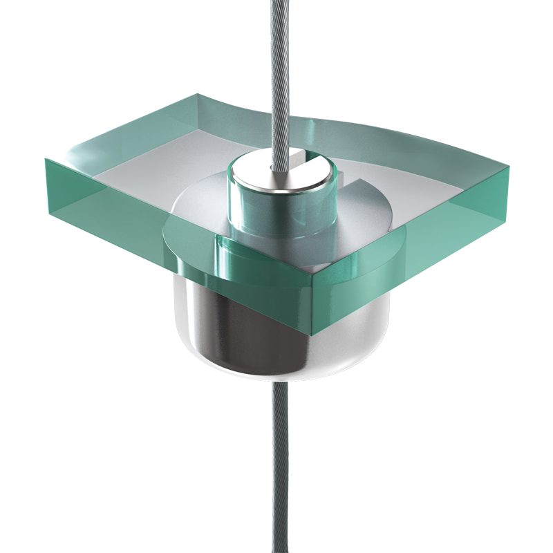 Support pour pose horizontale d'une tablette percée d'épaisseur maxi 6mm.Perçage diamètre 10 mm.A fixer sur câble diamètre 1,5 mm.