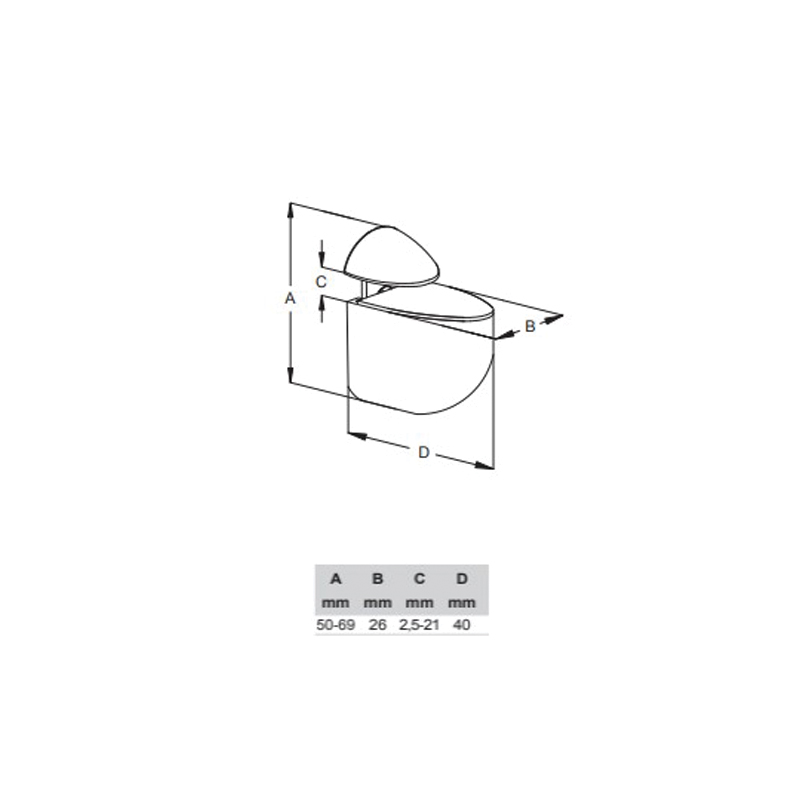 Pour tablette d'épaisseur 2,5 à 21 mm.