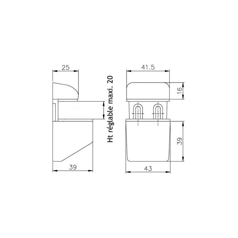 Pour tablette dépaisseur 5 à 20 mm.