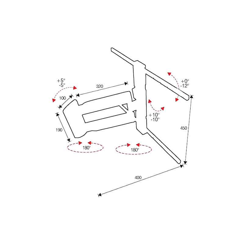 Inclinaison de 0° à -12°Passage de câble intégré.Livré avec fixations et platine VESA de 200 x 200 à 600 x 400.