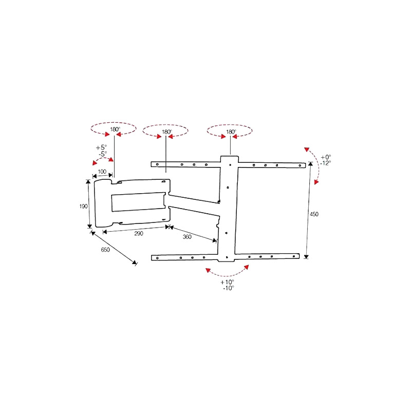 Inclinaisin de 0° à -12°Passage de câble intégré.Livré avec fixations et platine VESA de 200 x 200 à 600 x 400.