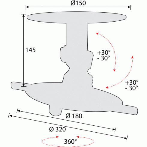 Fixation au plafond.Inclinaison de + 30° à - 30°.Ajustable en hauteur grâce à différents bras prolongateurs (en option).
