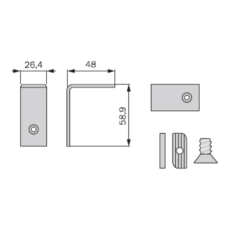 Set de 4 supports pour la fixation de caisson bois ou métal sur une structure STILIPHOS ou Ellipse.A fixer sur le profil vertical STILIPHOS ou Ellipse : 2 supports au-dessus et 2 supports en-dessous du caisson de chaque côté.Livré avec 4 platines de fixation et 4 vis M6x8mm pour profil vertical, et 4 vis à bois 4x16mm pour fixation du caisson.En cas de caisson d'un certain poids et de profondeur importante, il est conseillé d'utiliser en complément les supports 379 95070 00060 (à fixer au mur à l'arrière du caisson ou sur le profil vertical de chaque côté du caisson).