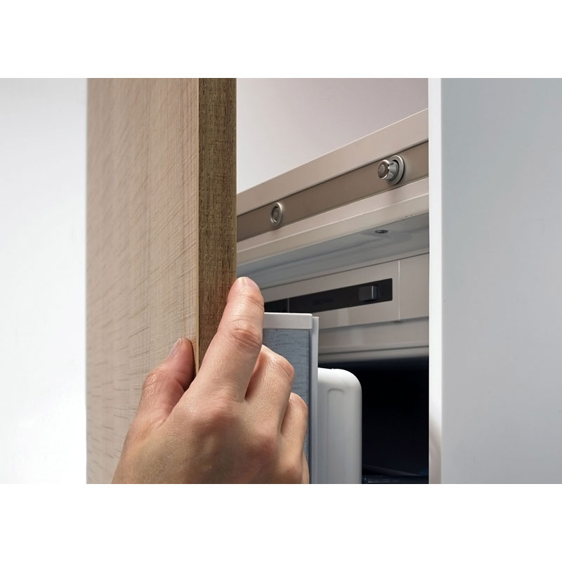 Mécanisme permettant une ouverture partielle du réfrigérateur sans effort par pression sur la porte. La durée d’ouverture est réglable entre 4 et 8 secondes. La porte se refermera automatiquement si aucune ouverture totale n’est effectuée.Utilisable avec porte de réfrigérateur largeur 500 mm à 600 mm et hauteur maxi 1780mm.Bandeau de façade décor chromé.Ensemble livré complet avec alimentation, gabarits, fixations et notice de pose. Mécanisme à encombrement réduit : Encastrement hauteur 22 mm.Largeur recoupable pour caisson de 500 mm à 600 mm.