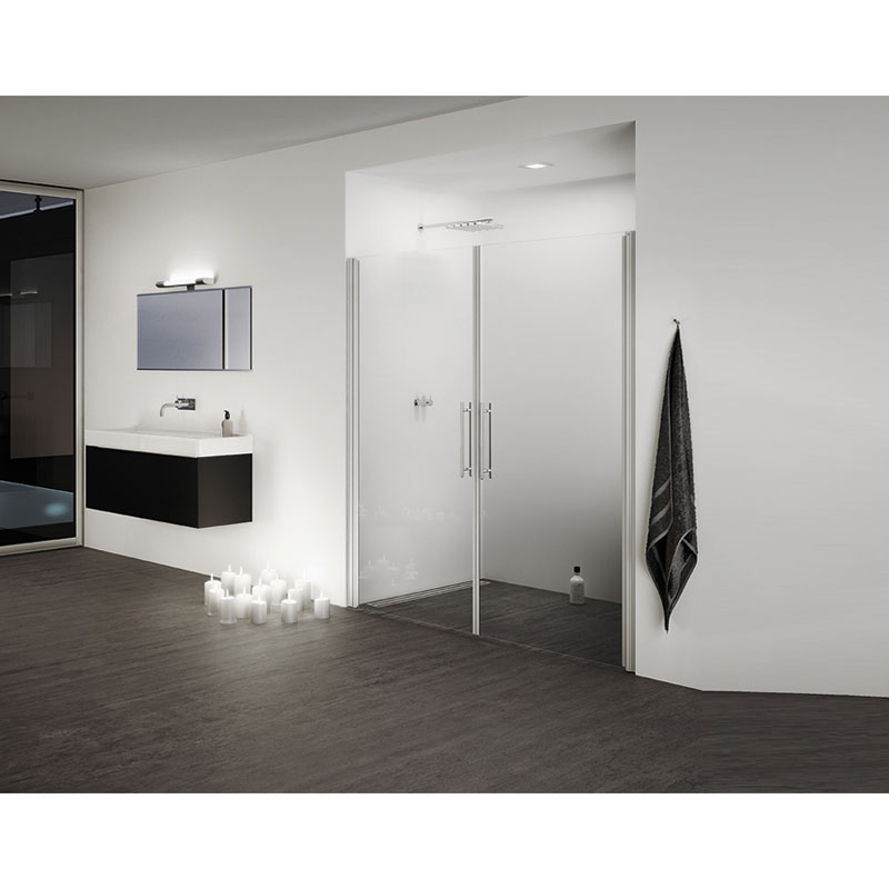 Pour la conception de porte pivotante va-et-vient de douche ou baignoire, avec blocage 3 positions (au centre, et à 90° dans les 2 sens).