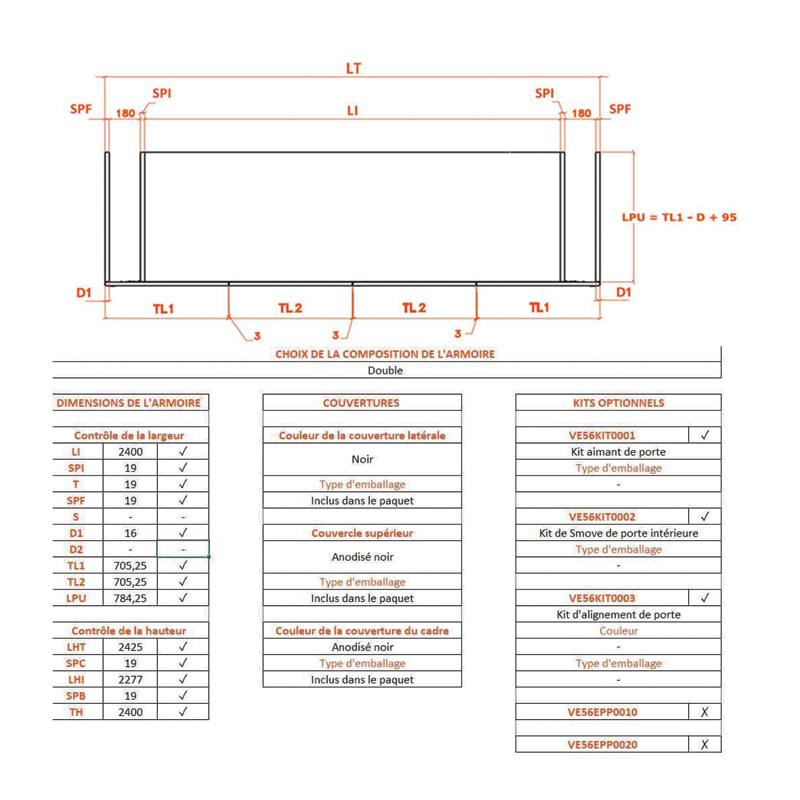 Le système pour une double porte à droite comprend l'option d'alignement des portes.