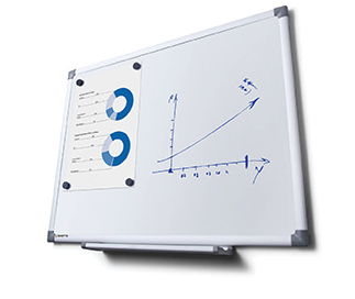 Tableau blanc magnétique effaçable pour marqueurs et aimants.Orientation portrait ou paysage.Cadre en aluminium anodisé avec angles de sécurité.Fourni avec porte stylos (prof. 300 mm) à visser.Fixations invisibles aux 4 angles ou système de crochets (matériel de fixation inclus).
